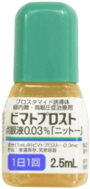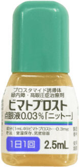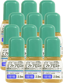 ビマトプロスト点眼液は、医薬品医療機器等法において、「緑内障、高眼圧症」の効能・効果で承認されていますが、美容目的での使用については国内で承認されていません。国内では同一成分の先発品のグラッシュビスタ®が「まつ毛貧毛症治療薬」として承認されています。万一、副作用が出た場合は、医薬品副作用被害救済制度の対象外となります。